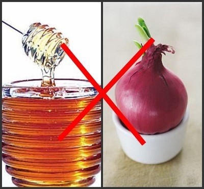 洋葱+蜂蜜:同食会伤眼睛的,引起眼睛不适,严重会失明,切记;